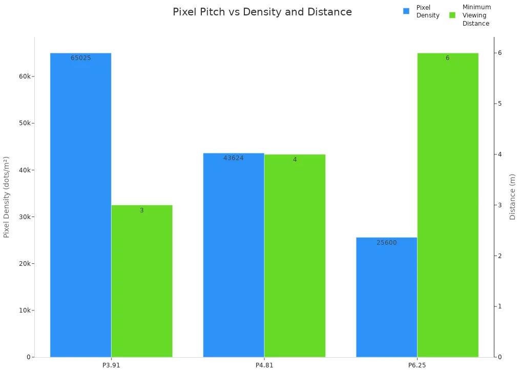 Hochauflösende LED-Bildschirme zeigen leuchtende Farben und klaren Text. Ihr Leitfaden sollte Ihnen dabei helfen, die Auflösung an Ihre Inhalte anzupassen. Für detaillierte Grafiken oder Videos wählen Sie eine LED-Videowand mit kleinerem Pixelabstand und höherer Pixeldichte.